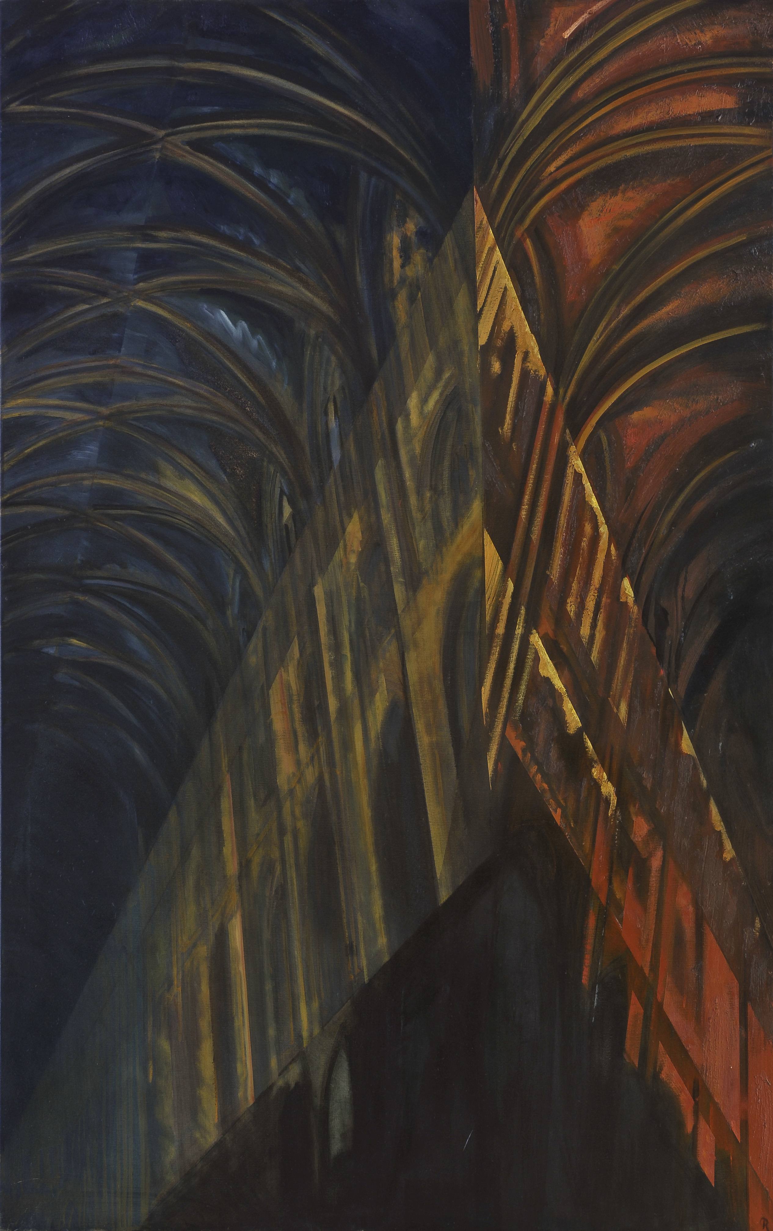 Zarówno siedmiostopniowa skala dźwięków, jak i często porównywana do niej skala siedmiu barw pryzmatycznych może być nośnikiem emocji trwających w czasie. Zmienne i rytmiczne tempo utworu muzycznego również kształtuje niejedno dzieło w procesie percepcji. Czasowość odczytywania obrazu, odkrywania jego tajemnicy, identyfikacji skomplikowanej przestrzeni dostrzec można w drugiej fazie malowania cyklu Katedra (XIII–XV, XVII, 2008–2011). Rozbudowanie kompozycji w wydłużonym wertykalnym lub horyzontalnym ciągu powtórzeń wiodącego motywu, komplikacje w nakładaniu się perspektywicznych ujęć, z częstym zabiegiem odbicia czy odwrócenia całych stref obrazowania, wreszcie wprowadzenie figury ludzkiej jako kontrapunktu dla całości, z dominacją architektonicznych elementów – jest widoczną formą konstrukcyjną, którą można postrzegać w kategoriach tzw. figurowania „melodii obrazów” (Katedra XII, XXVIII–XXXIV, 2009–2011). Figurowanie to, jak w muzyce, polega na wielorakim przetwarzaniu dominującego tematu w określonych kierunkach, wewnętrznie współbrzmiącego z konstrukcją formy, z nierzadkim symptomem pojawienia się trawestacji i przekształceń elementów wyjściowych. Obecny w tych obrazach motyw sklepienia krzyżowo-żebrowego może tu „grać” trójwymiarową iluzyjnością przedstawień – przenikających się wzajemnie – może też wydobywać ich wspomniany, geometryczny aspekt, bliski zaledwie rysunkowemu zaznaczaniu form w trakcie trwającej w czasie próby rozpoznania przedstawionego motywu.