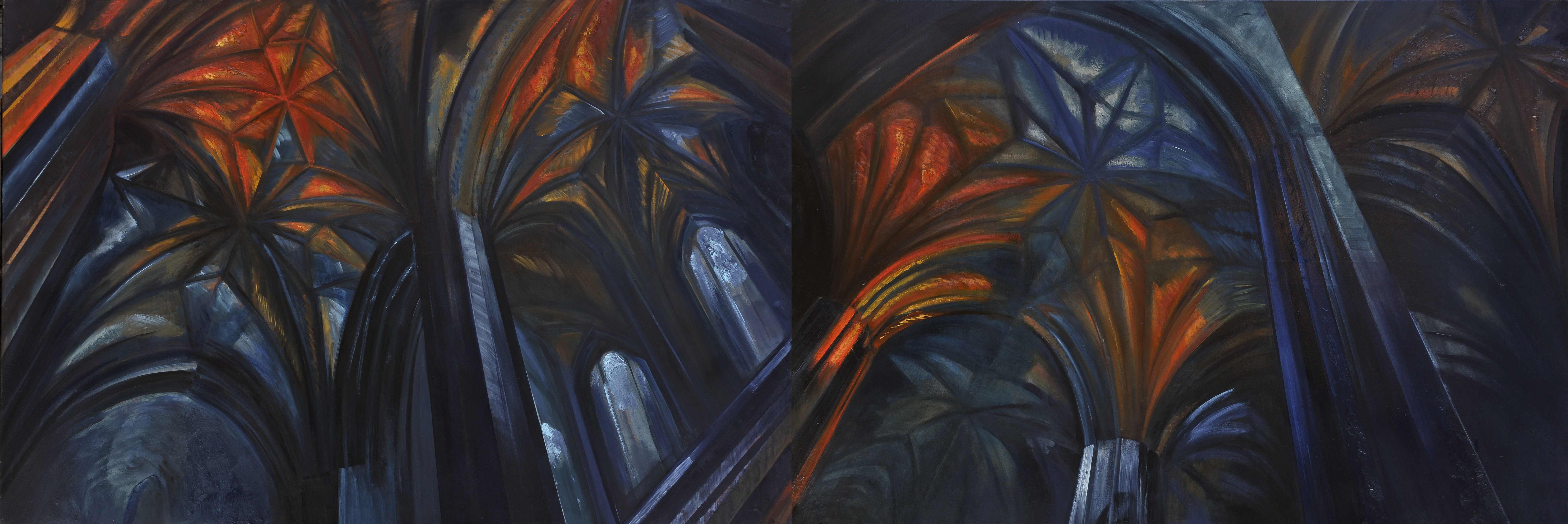 W cyklu Katedra zauważamy „pętlę czasową”; korzystanie z dawnych teorii estetycznych oraz ze współczesnych środków wyrazu. Dostrzegamy w nich formalno-znaczeniowe elementy, uwzględniające omawiany aspekt muzyczny: w pierwszych katedrach dominuje konstrukcyjny schemat wydobycia tego, co podstawowe, w przesłaniu trwałe, w porządku aprioryczne, harmonizowane zrównoważonym współgraniem geometrii i koloru (2007–2009). Można je ogarniać jednym spojrzeniem ukierunkowanym na centrum. W drugiej odsłonie realizacji gra iluzją jest przyczynkiem do dynamicznego traktowania rytmu, czasu, elementów narracyjnych, zmiennych zawodnych dla precyzyjnej percepcji (2009–2011). Rozpoczynające się wątki tematów i melodyka ich pojawiania się są aleatoryczne. Wtedy postrzeganie jest indywidualnym konstruowaniem zakłóconej spójności obrazowanej przestrzeni wyimaginowanego lub konkretnego wnętrza katedry w wizualnie logiczną całość.*