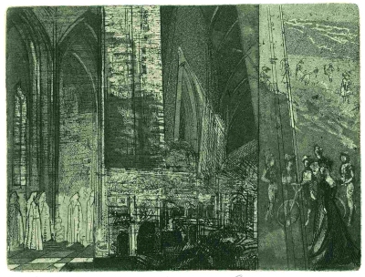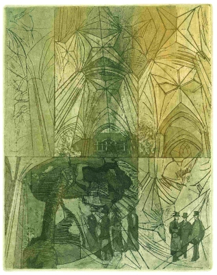 Sklepienie dzieła, na kształt katedry, staje się tu symbolem czasu odzyskanego. Przedstawienie na rycinie jest otwartą, jakby organiczną przestrzenią, siecią, która, zależnie od mimowolnych skojarzeń, według własnych praw pamięci odbiorcy, wyświetla przeżyte sprawy lub je pomija.