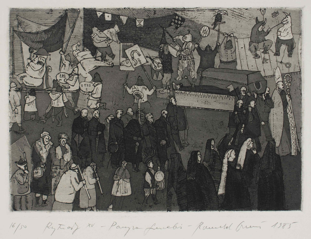 Wszystkie grafiki z cyklu Rytuały. Pompa funebris, 1985