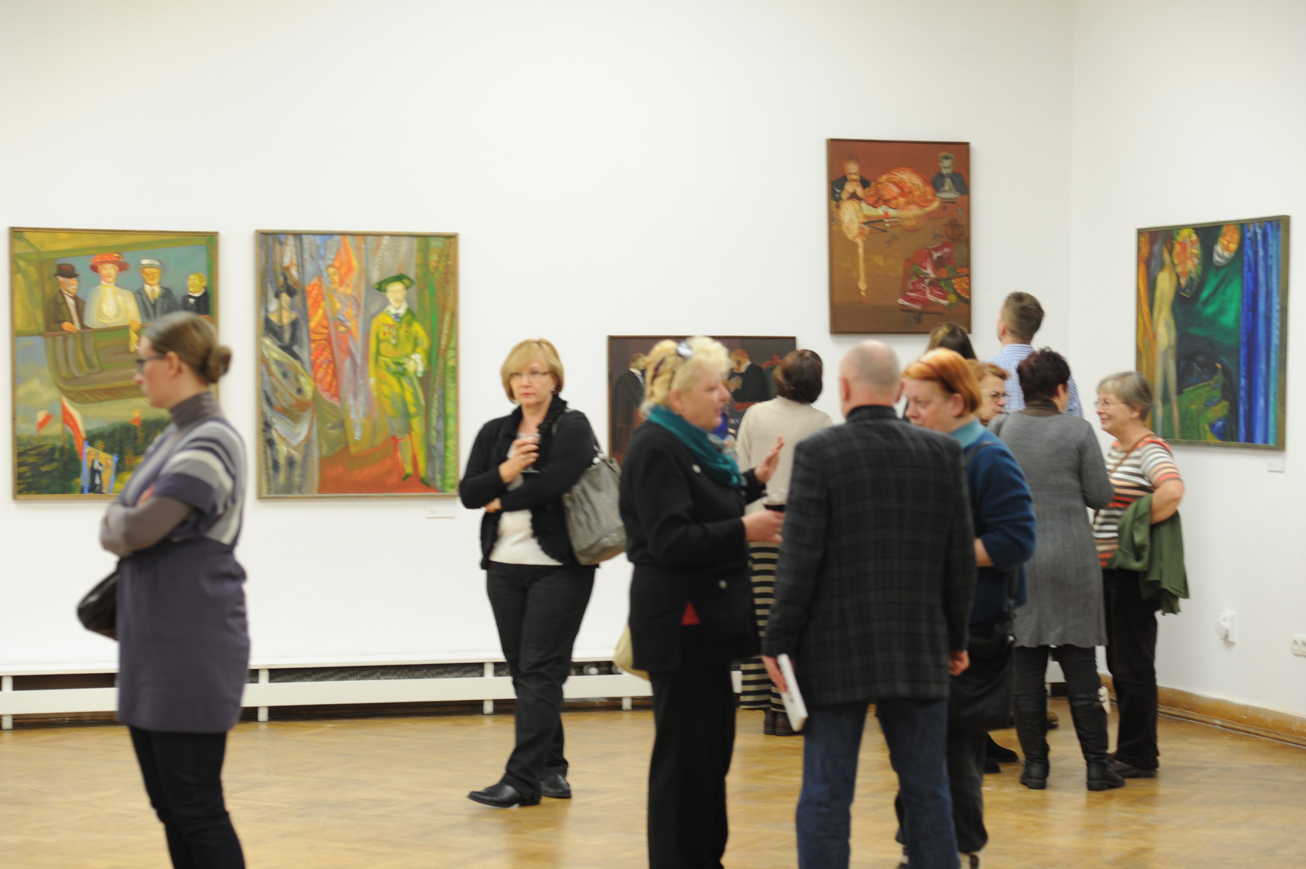 Po lewej 3 obrazy Sobolewskiego, pozostałe prace Oramusa