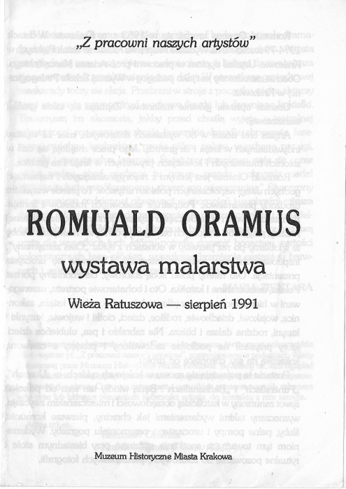 O artyścieBibliografiaKatalogi, foldery, druki towarzyszące wystawom indywidualnym i zbiorowymZ pracowni naszych artystówZ pracowni naszych artystów. Romuald Oramus, malarstwo; druk towarzyszący wystawie; tekst: Maria Zientara, Muzeum Historyczne Miasta Krakowa, Wieża Ratuszowa, Kraków 1991
