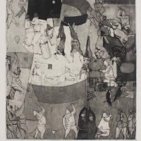Romuald Oramus (ur. 1953 r.) krakowski artysta uprawiający równolegle malarstwo i grafikę warsztatową. Twórca pozostający pod urokiem tradycji, równocześnie żywo obserwujący aktualną rzeczywistość. W swoich pracach z nutką ironii komentuje groteskowość zbiorowych rytuałów zarówno dawnych, jak i współczesnych. Jednak główną inspiracją sztuki Oramusa jest jednostkowe doświadczenie życia we wszystkich jego aspektach, tych fizycznych, zmysłowych i emocjonalnych, a także tych intelektualnych i duchowych.
