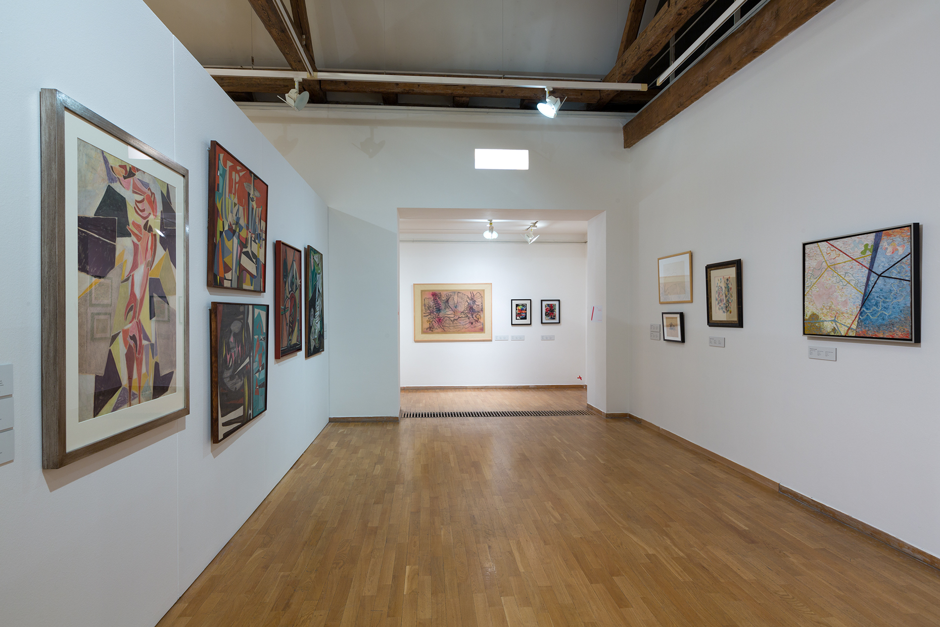 Przestrzeń przy wejściu, po prawej obraz i rysunki Władysława Strzemińskiego z lat 1943-1949, po lewej prace Marii Jaremy, Jonasza Sterna i Bogusława Szwacza z lat 1948-1950, w perspektywie na wprost prace na papierze: Jerzego Kujawskiego (1947) oraz Alfreda Lenicy (1948).
