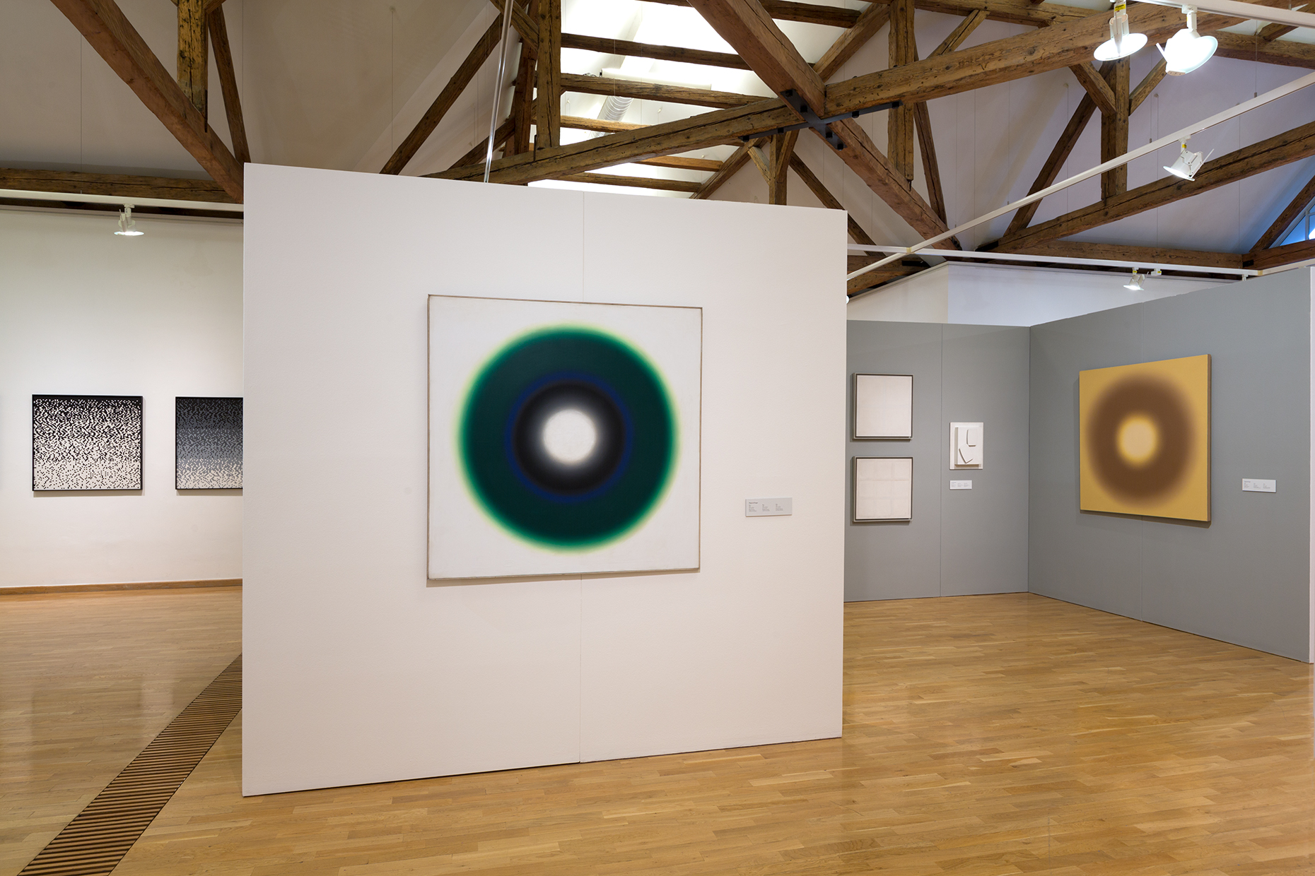 Przestrzeń centralna, na wprost dwa obrazy Stefana Gierowskiego (1965, 1974-1975), po lewej dwa obrazy Kajetana Sosnowskiego z 1965 roku, w głębi prace Stanisława Dróżdża (1967/2008, 1967/2009).