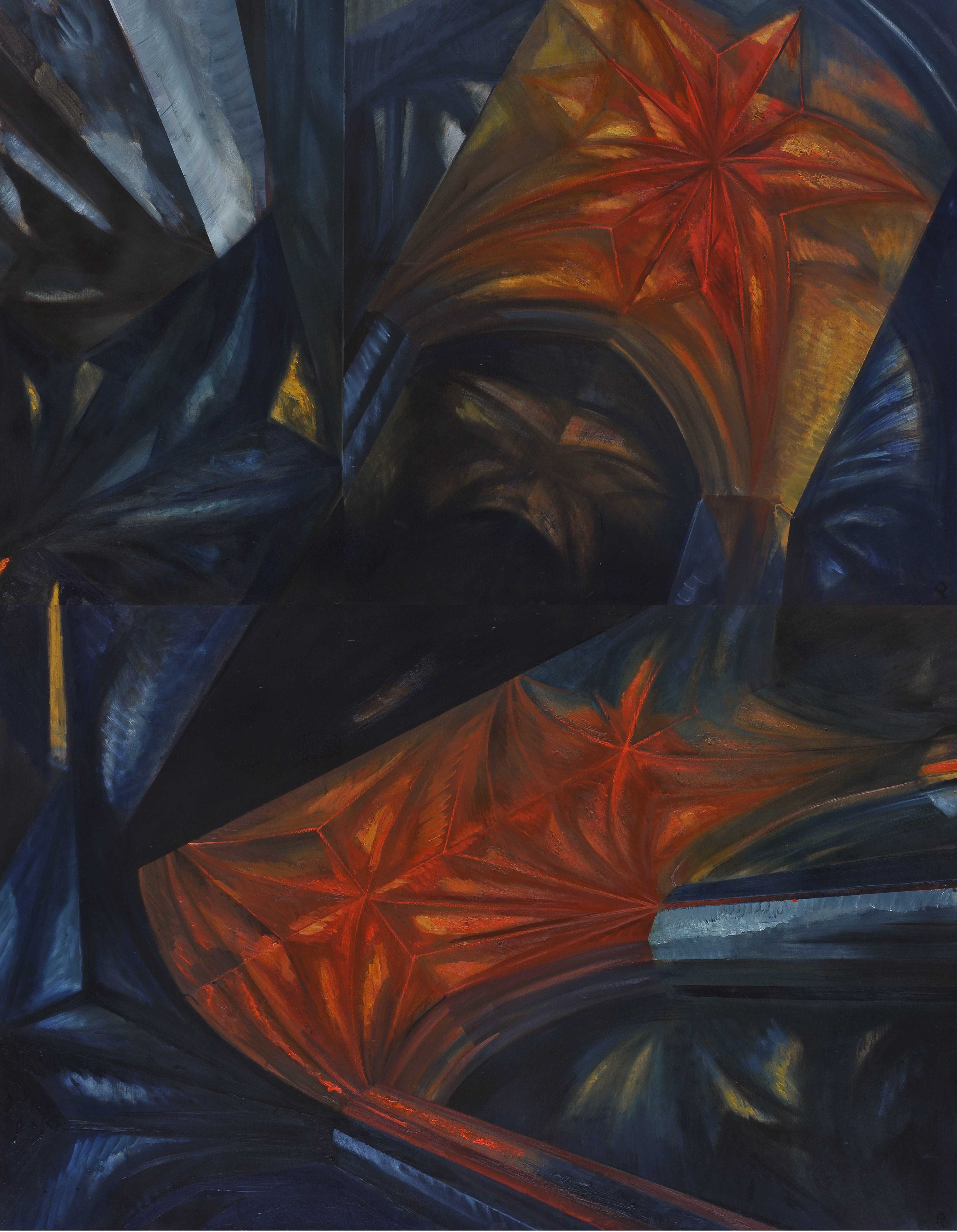 Zarówno siedmiostopniowa skala dźwięków, jak i często porównywana do niej skala siedmiu barw pryzmatycznych może być nośnikiem emocji trwających w czasie. Zmienne i rytmiczne tempo utworu muzycznego również kształtuje niejedno dzieło w procesie percepcji. Czasowość odczytywania obrazu, odkrywania jego tajemnicy, identyfikacji skomplikowanej przestrzeni dostrzec można w drugiej fazie malowania cyklu Katedra (XIII–XV, XVII, 2008–2011). Rozbudowanie kompozycji w wydłużonym wertykalnym lub horyzontalnym ciągu powtórzeń wiodącego motywu, komplikacje w nakładaniu się perspektywicznych ujęć, z częstym zabiegiem odbicia czy odwrócenia całych stref obrazowania, wreszcie wprowadzenie figury ludzkiej jako kontrapunktu dla całości, z dominacją architektonicznych elementów – jest widoczną formą konstrukcyjną, którą można postrzegać w kategoriach tzw. figurowania „melodii obrazów” (Katedra XII, XXVIII–XXXIV, 2009–2011). Figurowanie to, jak w muzyce, polega na wielorakim przetwarzaniu dominującego tematu w określonych kierunkach, wewnętrznie współbrzmiącego z konstrukcją formy, z nierzadkim symptomem pojawienia się trawestacji i przekształceń elementów wyjściowych. Obecny w tych obrazach motyw sklepienia krzyżowo-żebrowego może tu „grać” trójwymiarową iluzyjnością przedstawień – przenikających się wzajemnie – może też wydobywać ich wspomniany, geometryczny aspekt, bliski zaledwie rysunkowemu zaznaczaniu form w trakcie trwającej w czasie próby rozpoznania przedstawionego motywu.