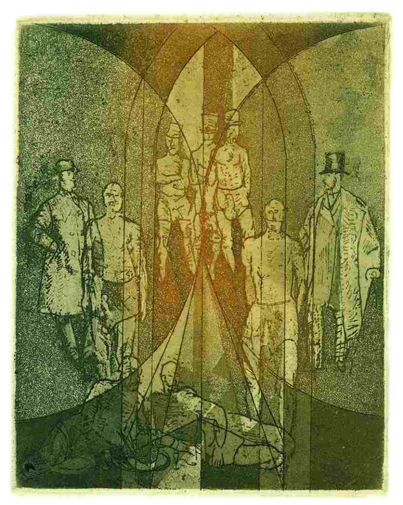 - technika :akwaforta, akwatinta, miękki werniks, odprysk