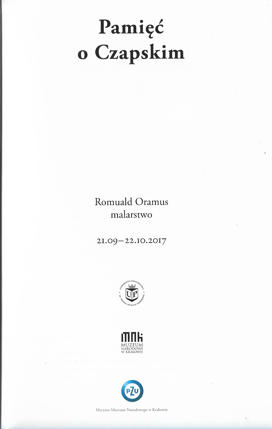 Pamięć o Czapskim. Romuald Oramus, malarstwo; katalog wystawy; teksty: Anna Budzałek, Pamięć o Czapskim. Romuald Oramus, malarstwo; Romuald Oramus, Pamięć o Józefie Czapskim [druga część katalogu: Pamięć o Czapskim. Stanisław Sobolewski, malarstwo], Pawilon Józefa Czapskiego – Muzeum Narodowe w Krakowie, Uniwersytet Pedagogiczny w Krakowie, Kraków 2017