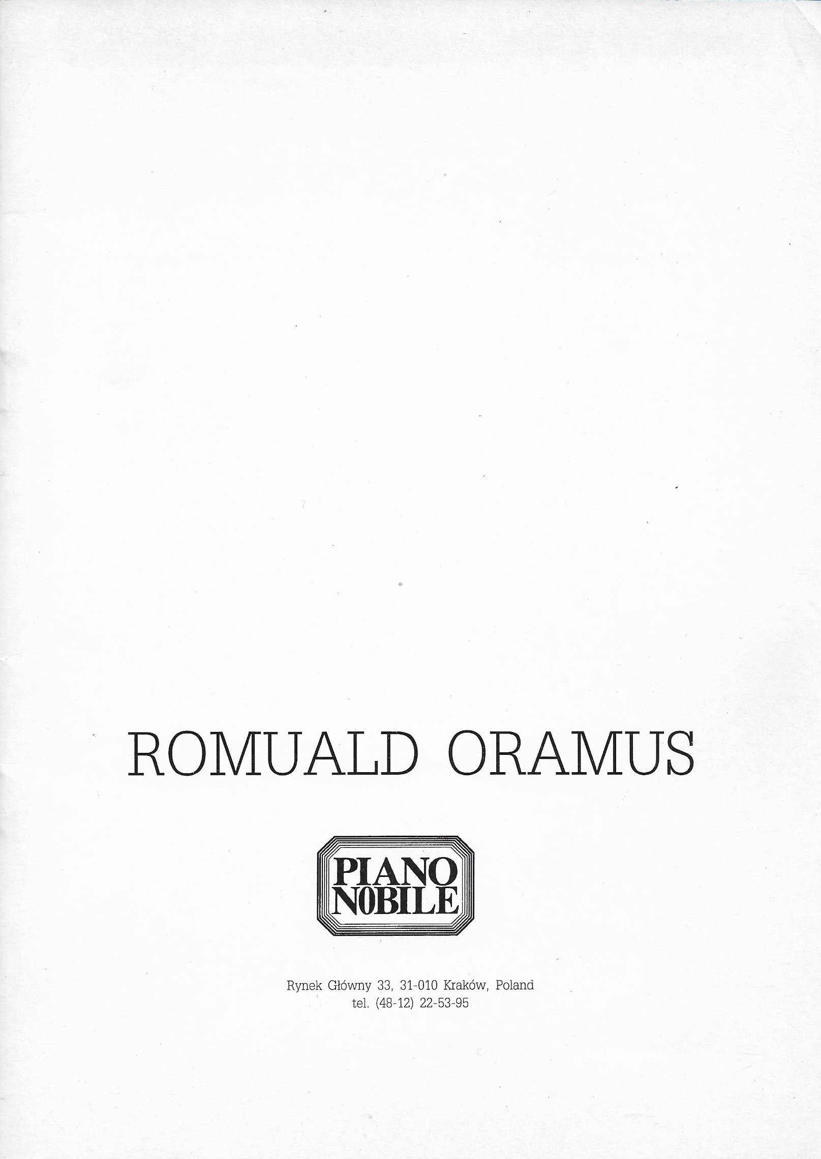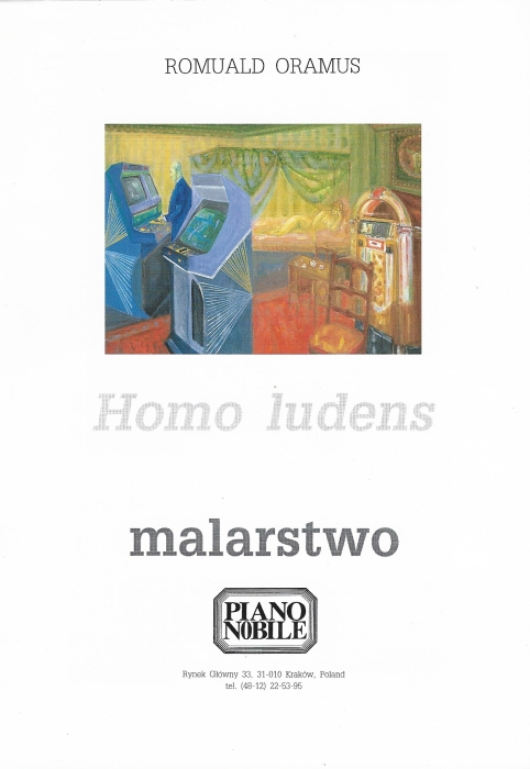 Romuald Oramus, Homo ludens; katalog wystawy, teksty: Günter G. Bauer, Sztuka a zabawa. Homo ludens. Seria obrazów Romualda Oramusa / Kunst und Spiel. Serie von Romuald Oramus; Romuald Oramus, Zabawa, gra, rytuał oraz radość iluzji; Galeria Piano Nobile, Kraków 1996